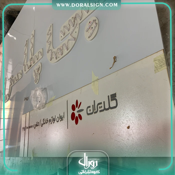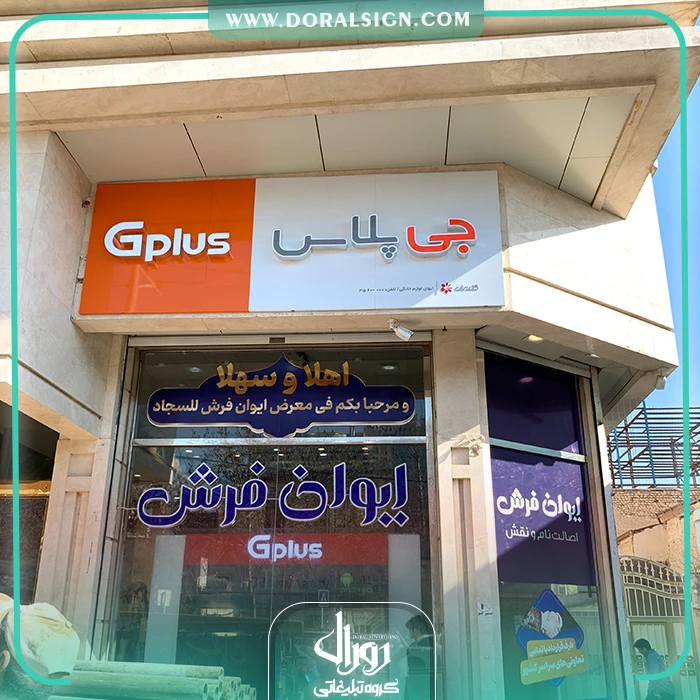 تابلو کامپوزیت چنلیوم جی پلاس فروشگاه ایوان فرش شعبه کوشش