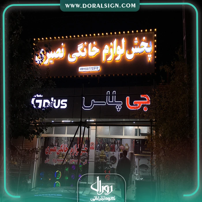گروه تابلوسازی دورال مفتخر به نصب و اجرای تابلو کامپوزیت چنلیوم برای شرکت جی پلاس فروشگاه نصیری واقع در مشهد میباشد.
