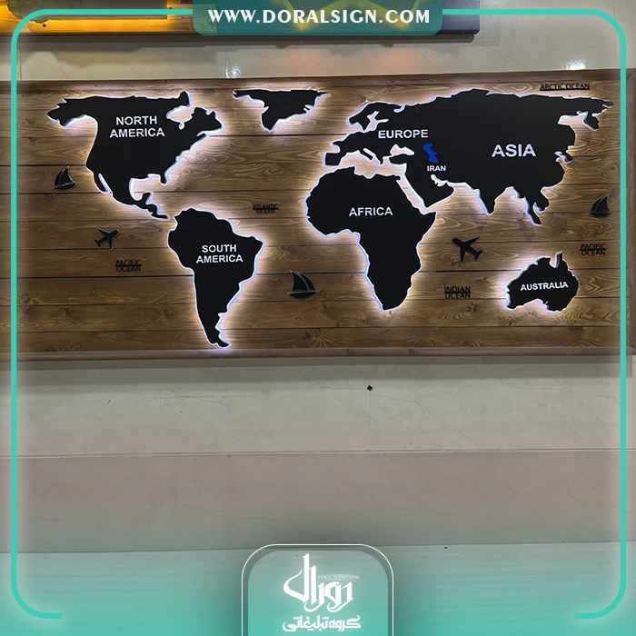 تابلو فلزی نقشه جهان با نور شرکت بازرگانی